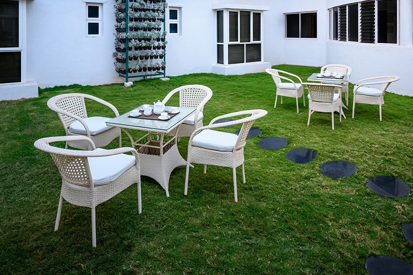 A garden café with a quiet ambience serving hot & cold coffee and tea with crisp and crunchy snacks.